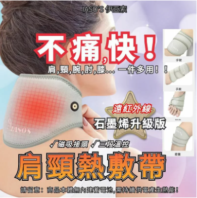 肩頸疼痛是現代人痛病,尤其很多上了年紀的長輩深受此苦, 推薦【伊亞索】石墨烯腰腹熱敷帶,表層熱活化、深層熱循環,三段定時溫控, 採用石墨烯機能布料,釋放遠紅外線,能量再提昇、穿透更深入,輕鬆解決痠痛困擾!