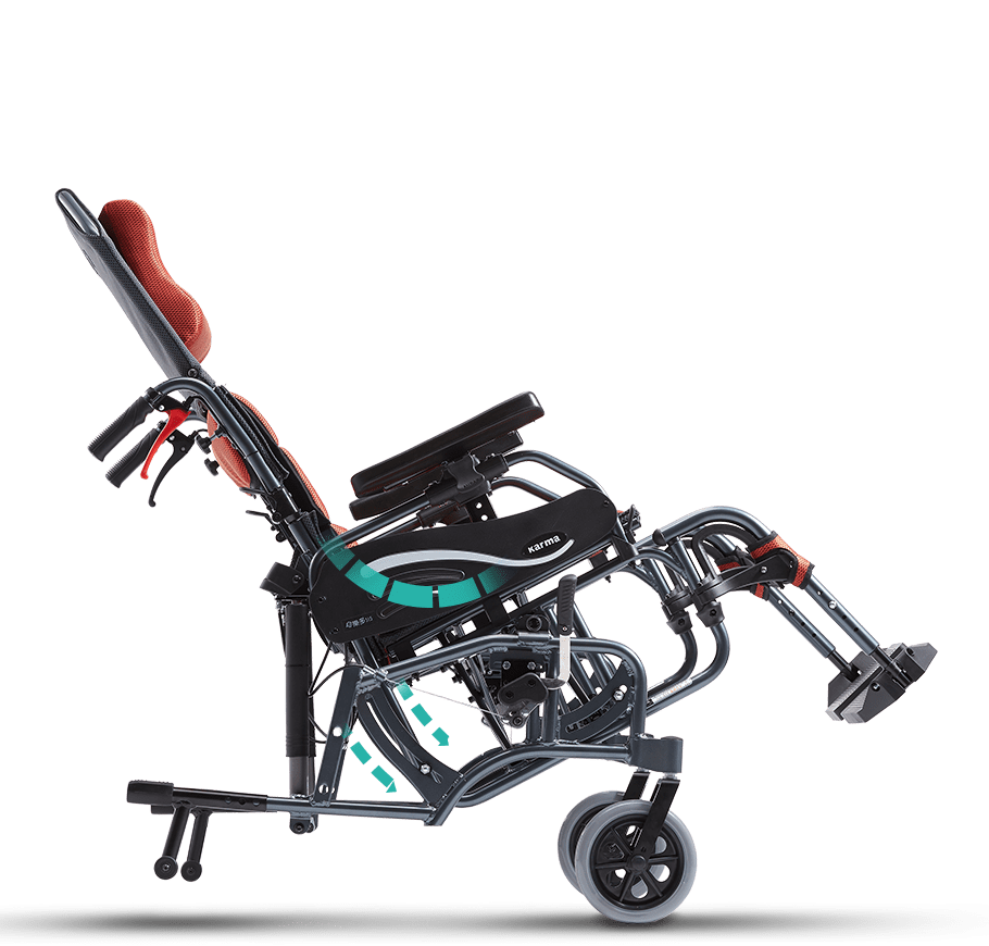 •空中傾倒 深層紓壓 讓照護者可以輕鬆省力的將座椅系統抬升,並空中傾倒0-35度,使得乘坐者能藉由變換坐姿,釋放累積在臀部的壓力。
