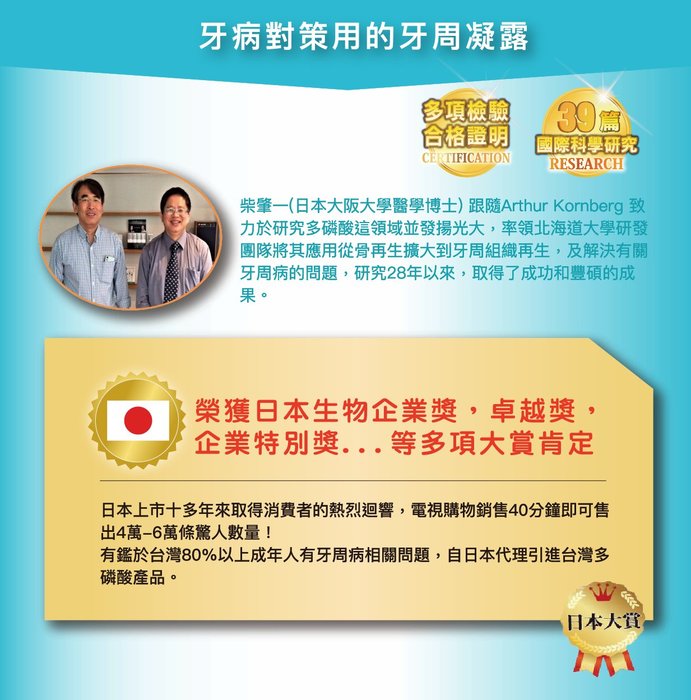 #諾貝爾牙周凝露#日本原裝進口#日本製#牙周凝露#牙齒保健品#牙周保健#牙周病#中長鏈多磷酸