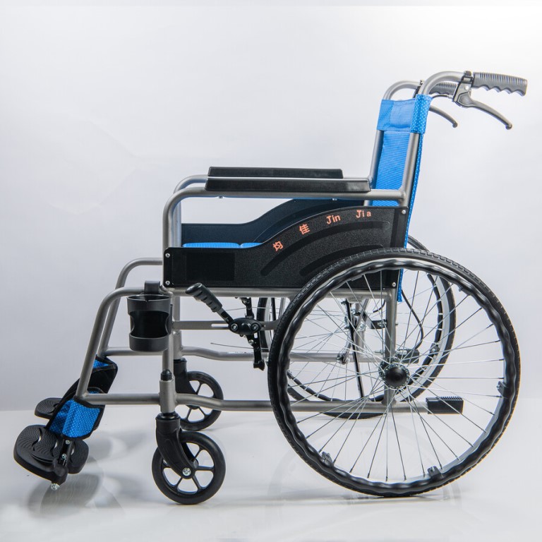 1.固定扶手,固定靠腳,背不折鋁合金輪椅。